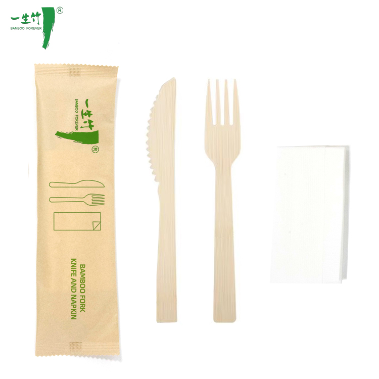 Perangkat Makan Bambu Sekali Pakai dengan Pembungkus Kertas